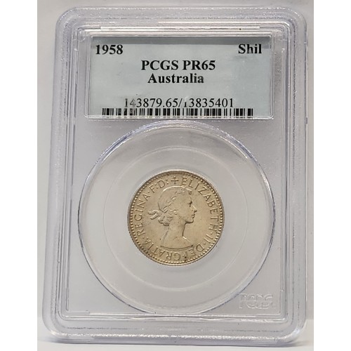 Australia 1958 One 1 Shilling. Proof. PCGS PR65. Rare this High Grade. Gem.