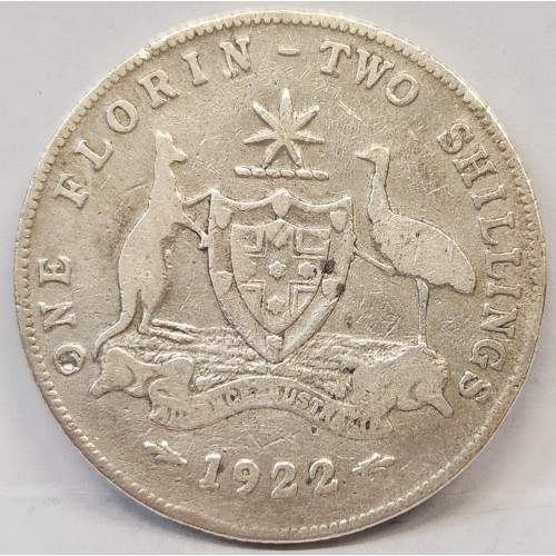 Australia 1922 Florin. Very Scarce in any Condition. Low Mintage.