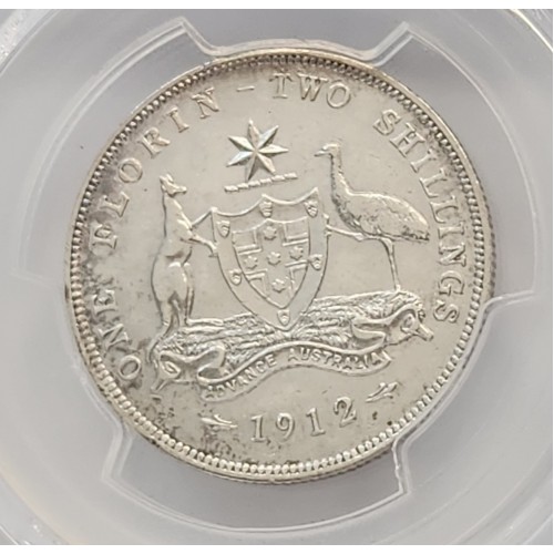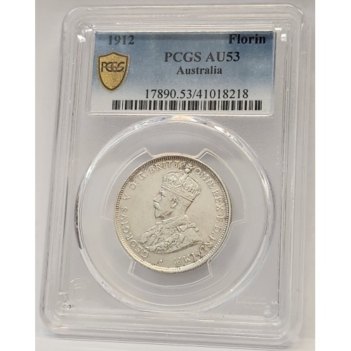Australia 1912 Florin. PCGS AU53. Low Mintage. Key Date. Rare. Lustre.