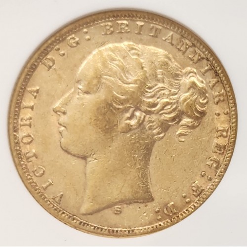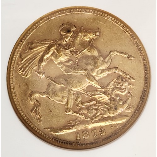 Australia 1874 S One 1 Sovereign. Sydney. Gold. Slabbed. ANACS AU55. Rare.