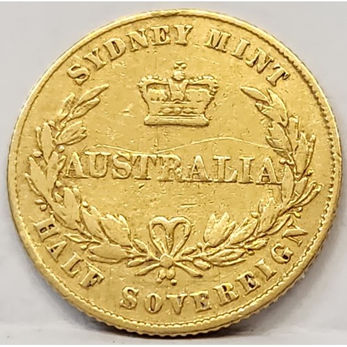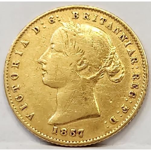 AUSTRALIA 1857 . HALF 1/2 SOVEREIGN . SYDNEY . GOLD . SURFACE MARKS
