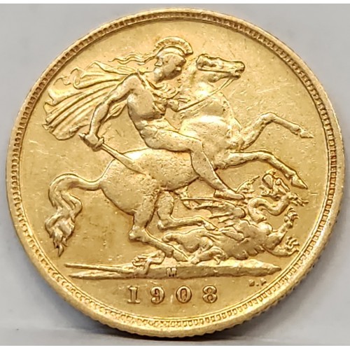 Australia 1908 M Half 1/2 Sovereign. Melbourne. Gold. Rare. Key Date. Low
