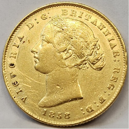 Australia 1858 One 1 Sovereign. Sydney. Gold. Scratch Marks. Key Date. Rare.