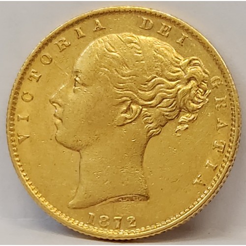 Australia 1872 S One 1 Sovereign. Sydney. Gold. Shield. Rare. Key Date. Low