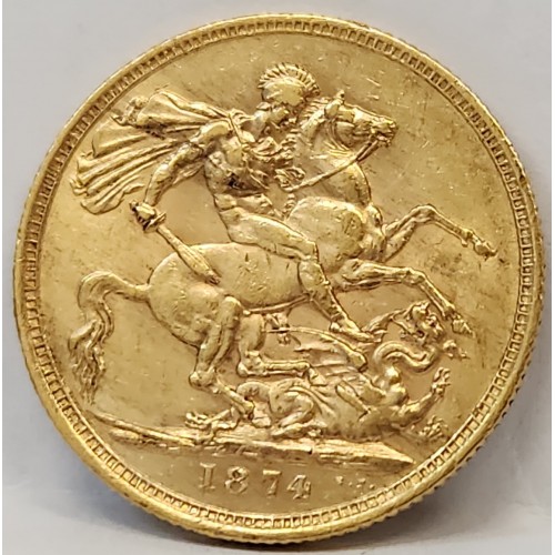 Australia 1874 S One 1 Sovereign. Sydney. Gold. Rare. Key Date. Low Mintage