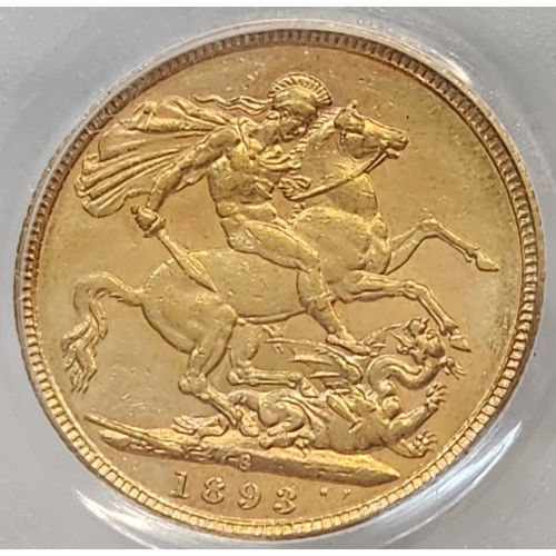 Australia 1893 S One 1 Sovereign. Sydney. Gold. Slabbed. PCGS AU55. Key
