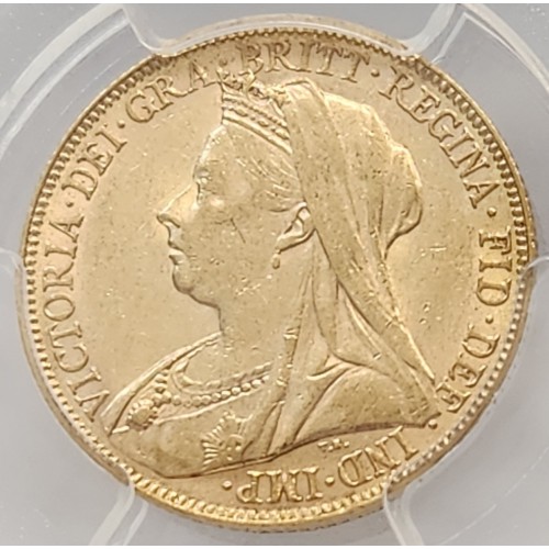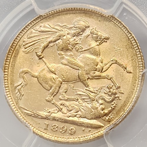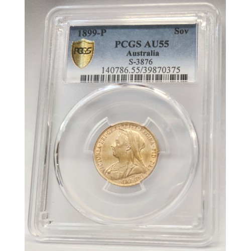 Australia 1899 P One 1 Sovereign. Perth. Gold. Slabbed. PCGS AU55. Rare.