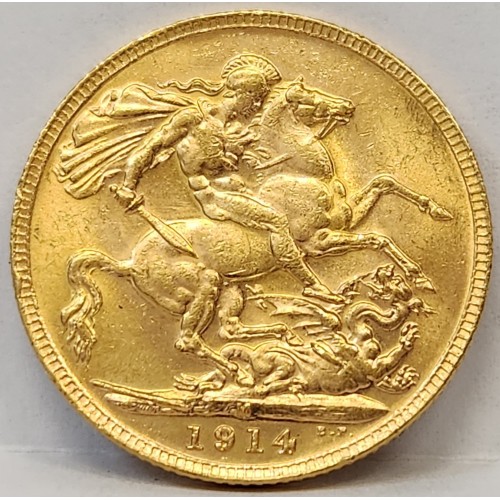 Australia 1914 M One 1 Sovereign. Melbourne. Gold. Rare. Key Date. Low