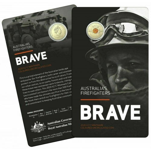 Australia 2020.Two 2 Dollar. Firefighters Coloured Coin on Card. With C Mintmark.