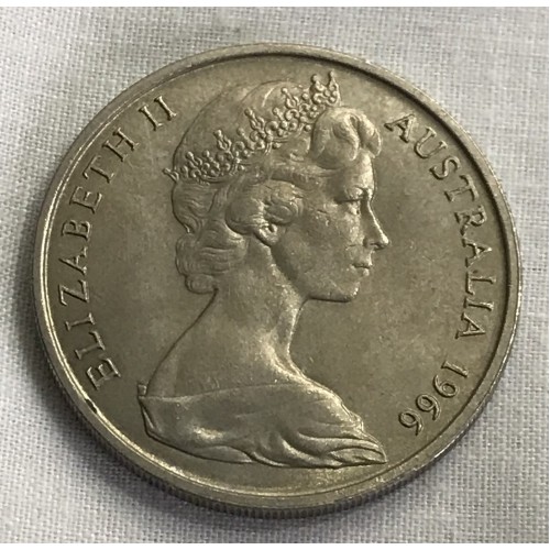 AUSTRALIA 1966 . TWENTY 20 CENTS COIN . FIRST PORTRAIT . PLATYPUS