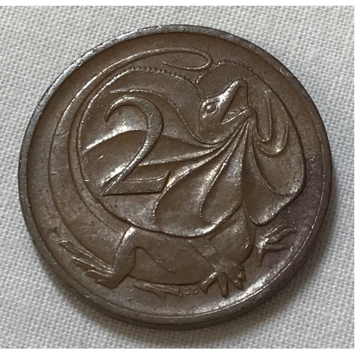 Australia 1971. Two 2 Cents Coin. Frilled Neck Lizard. Excellent Grade.