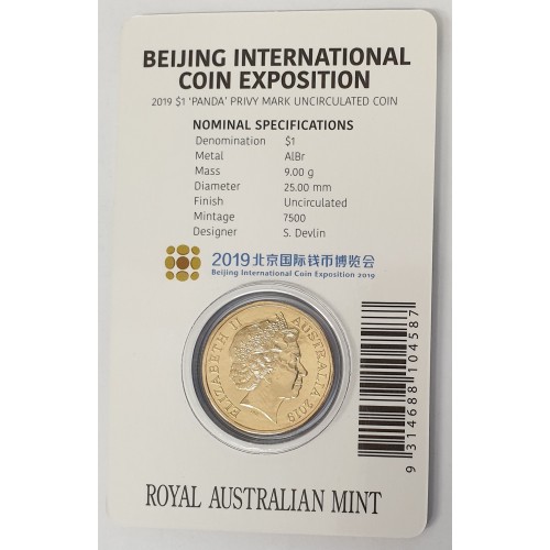 AUSTRALIA 2019 . ONE 1 DOLLAR COIN . BEIJING WITH PRIVY OF THE PANDA