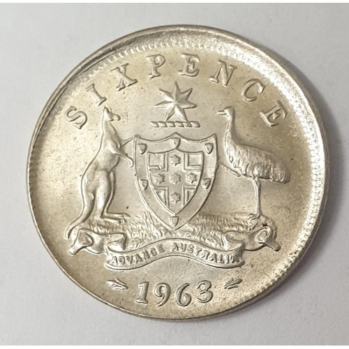 Australia 1963 Sixpence. Error. Mis-Strike. Off Centre. Scarce. Uncirculated