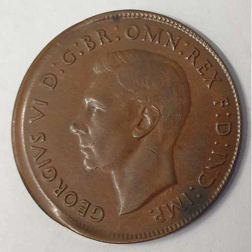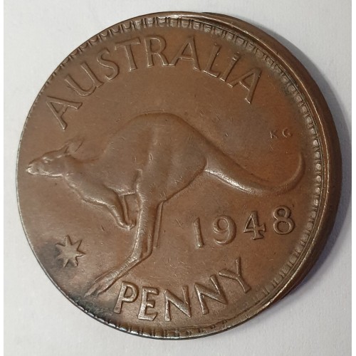 AUSTRALIA 1948 . ONE 1 PENNY . HUGE LIP . OFF CENTRE