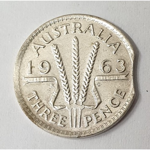 Australia 1963 Threepence. Error. Clipped Planchet. Very Scarce.