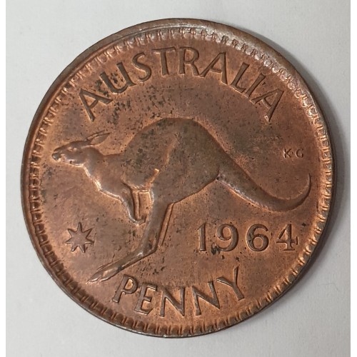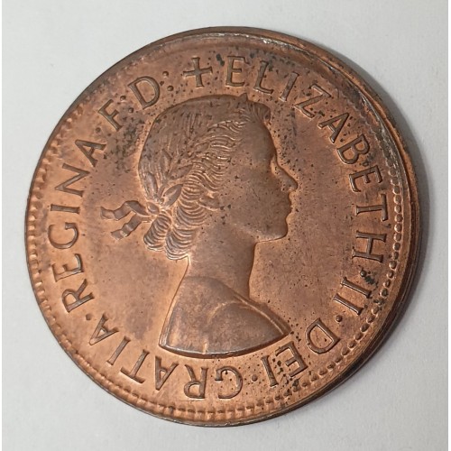 Australia 1964 One 1 Penny .Error .Nice Lip. Off Centre. Very Scarce.
