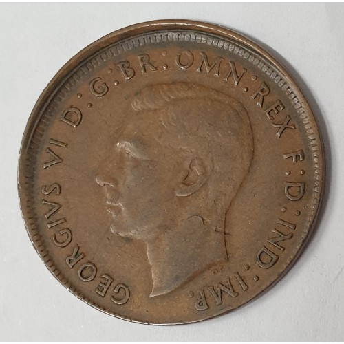 AUSTRALIA 1944 . ONE 1 PENNY . ERROR . OFF CENTRE MIS-STRIKE . BIG LIP
