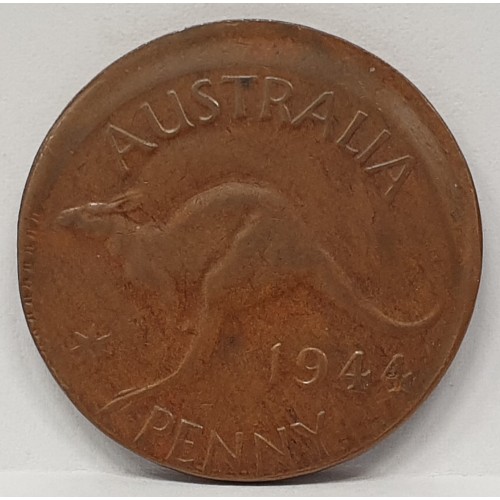 AUSTRALIA 1944Y. ONE 1 PENNY . ERROR . MIS-STRIKE . OFF CENTRE