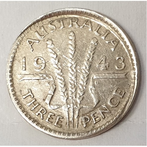 Australia 1943. Threepence. Error. Rare. Very Deep Impression from Reverse.