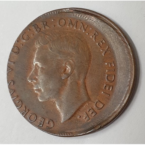 Australia 1951 One 1 Penny. Error. Huge Mis-Strike. Very Scarce.