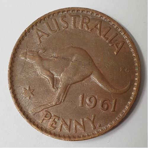 Australia 1961 One 1 Penny .Error. Planchet Flaw on Roo .gVery Fine