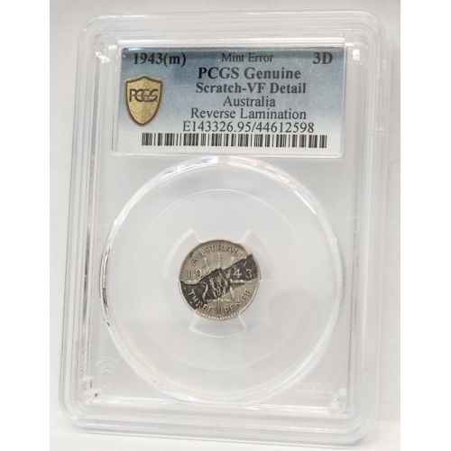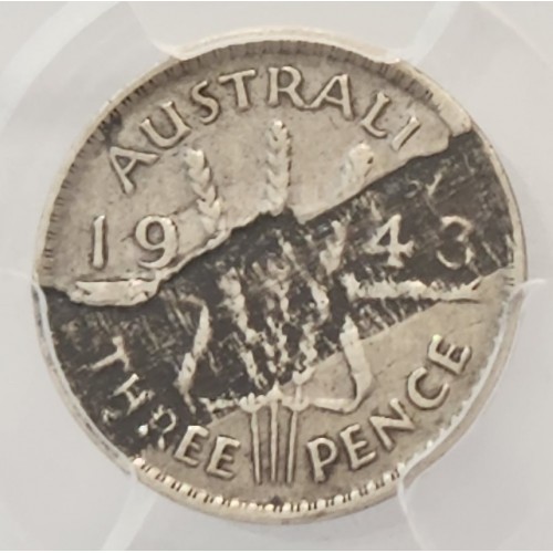 Australia 1943 Threepence. Error. Reverse Lamination. PCGS Slabbed. Genuine.