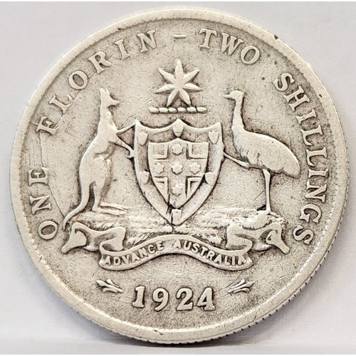 Australia 1924 Florin. Error/Variety. Die Cracks and Flaws. Missing Tail. Very Scarce.