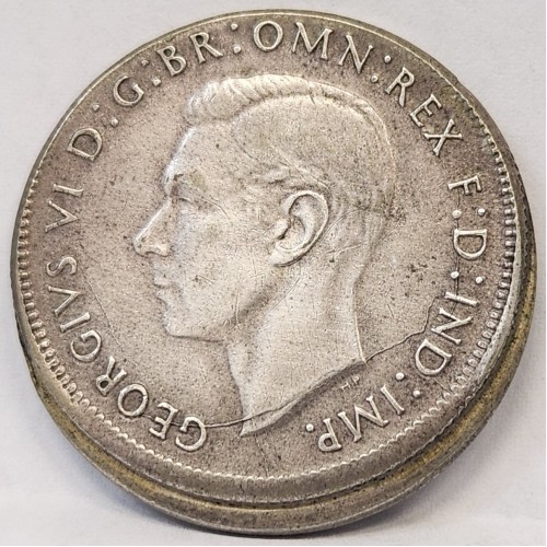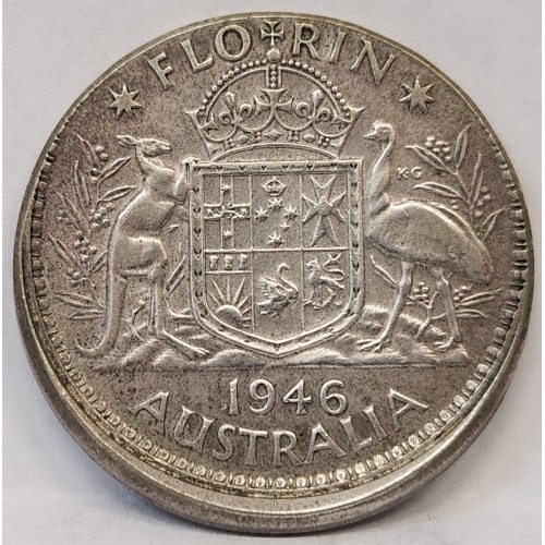 Australia 1946 Florin. Error. Off Centre Mis-Strike. Big Lip. Very Scarce.