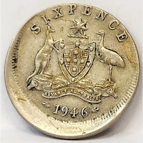 AUSTRALIA 1946 . SIXPENCE . ERROR . MIS-STRIKE . OFF CENTRE