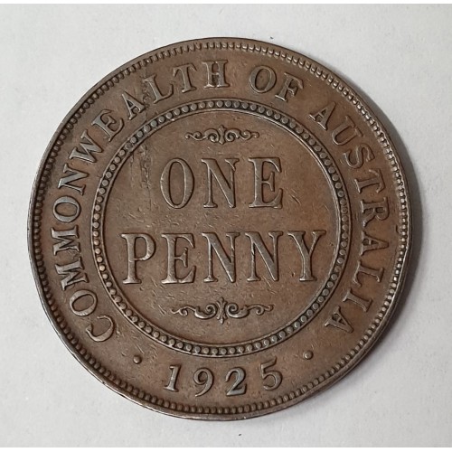 AUSTRALIA 1925 . ONE 1 PENNY . RARE ERROR . KEY DATE . FULL CENTER DIAMOND