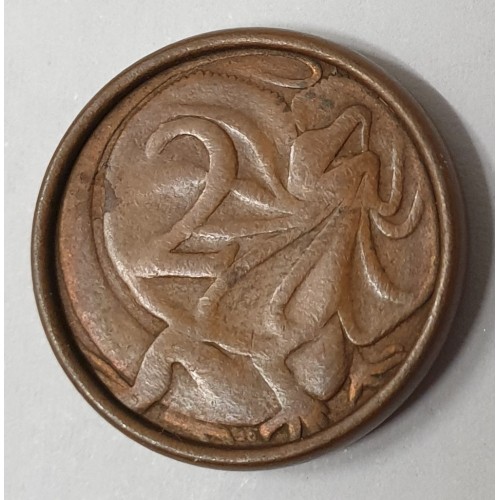 AUSTRALIA 1966 . TWO 2 CENTS COIN . ERROR . OIL FILLED SMALLER DIE . ROLLED EDGES