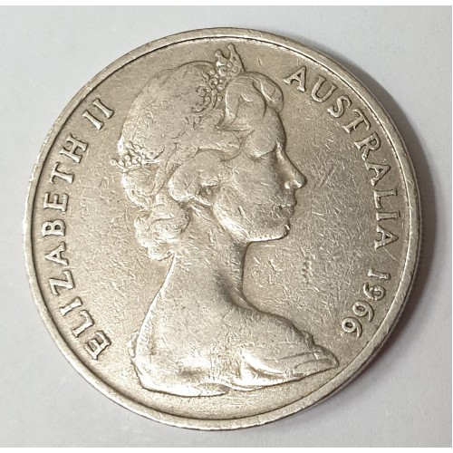 AUSTRALIA 1966 . TWENTY 20 CENTS COIN . WAVY 2 . RARE ERROR/VARIETY