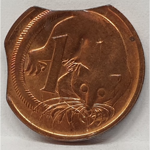 AUSTRALIA 1990 . ONE 1 CENT COIN . ERROR . DOUBLE BITTEN EDGE . DOUBLE CLIPPED