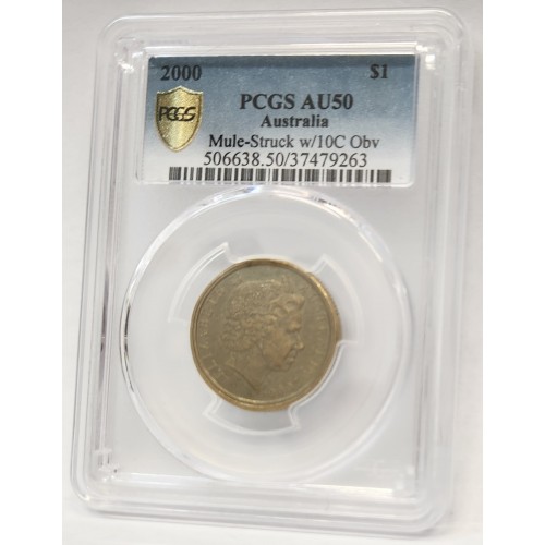 Australia 2000 One 1 Dollar Coin. Error. Mule. Struck with Ten Cent Obverse.