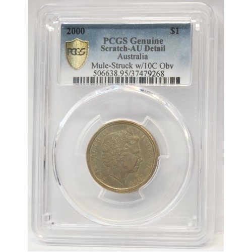 Australia 2000 One 1 Dollar Coin. Error. Mule. Struck on 10cent. PCGS Graded.