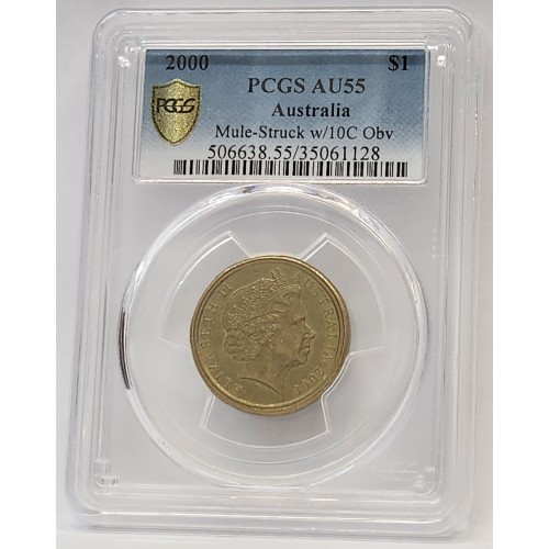 Australia 2000 One 1 Dollar Coin. Error. Mule. Struck on Ten 10 Cents.