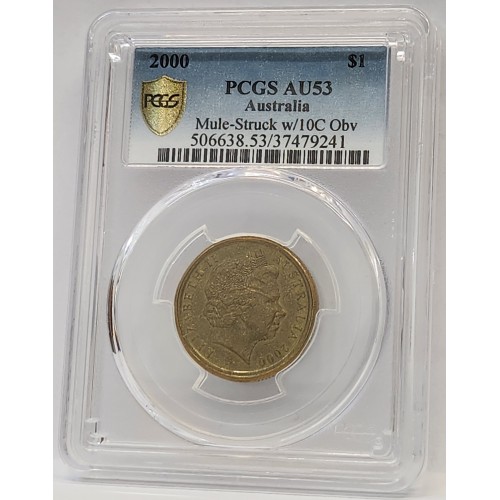 Australia 2000 One 1 Dollar Coin. Error. Mule. Struck on Ten 10 Cents.