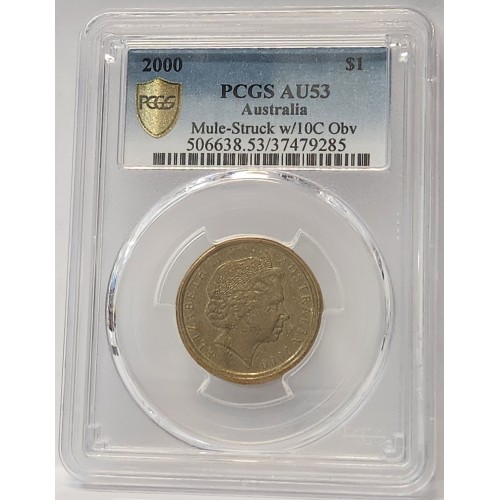 Australia 2000 One 1 Dollar Coin. Error. Mule. Struck on 10 cent Obverse.