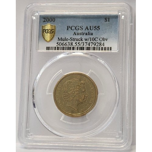 Australia 2000 One 1 Dollar Coin. Error. Mule. Struck on Ten 10 Cents Obverse.