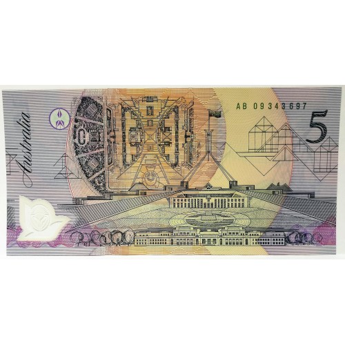 Australia 1992. Five 5 Dollar Banknote. Cole/Fraser.Serial: AB09343697.
