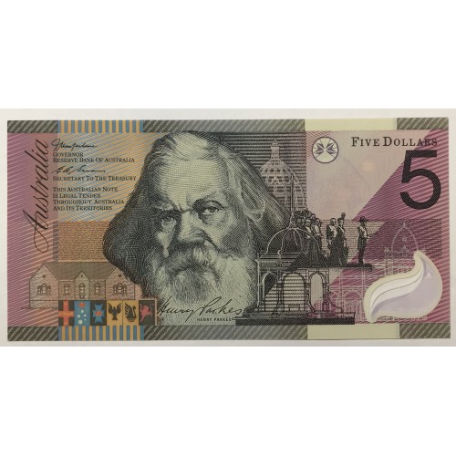 Australia 2001. Five 5 Dollars Banknote. Serial: DI01006000. MacFarlane/Evans.