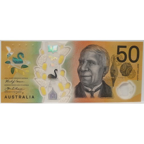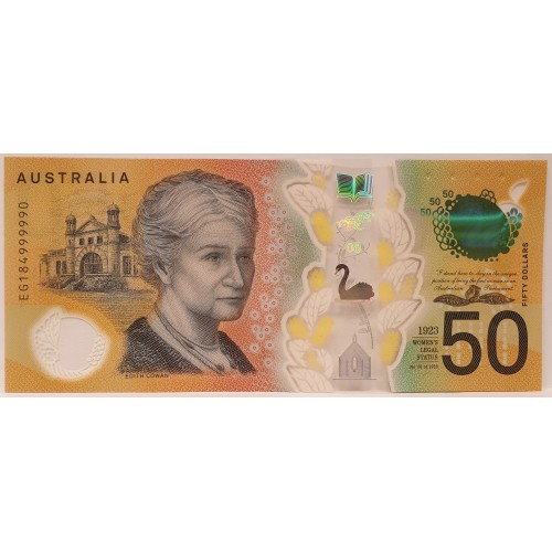 Australia 2018. Fifty 50 Dollars Banknote. Serial: EG184999990. Lowe/Fraser.