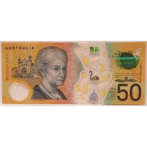Australia 2018. Fifty 50 Dollar Banknote. Serial: BH182273111. Lowe/Fraser.