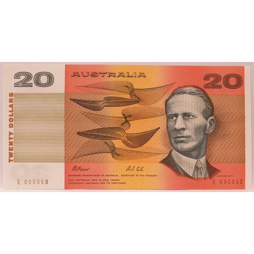 Australia 1993. Twenty 20 Dollar Banknote. Serial: E000060. Fraser/Cole. Rare.