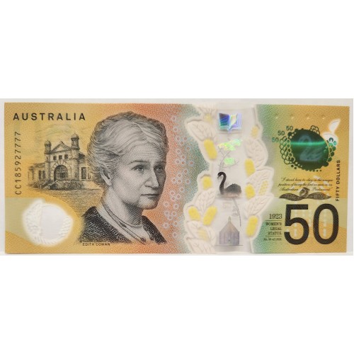 Australia 2018. Fifty 50 Dollars Banknote. Serial: CC185927777. Lowe/Fraser.