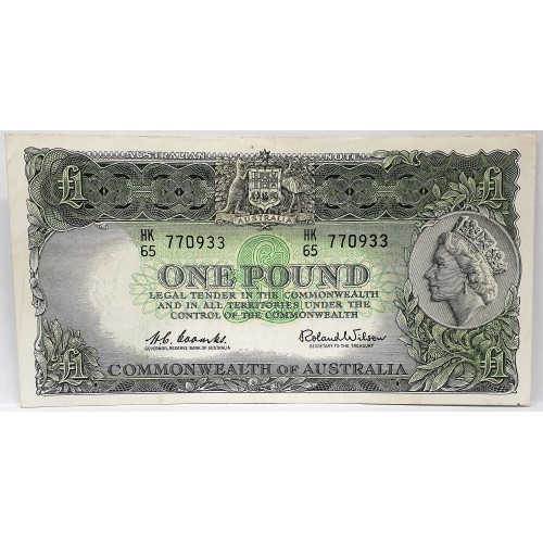 Australia 1961. One 1 Pound Banknote. Coombs/Wilson. Serial: HK65 770933.