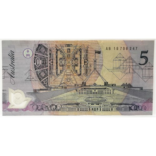 Australia 1992. Five 5 Dollar Banknote.Cole/Fraser. Serial: AB19706247.