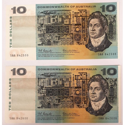 Australia 1966. Ten 10 Dollar Banknote. Coombs/Wilson. Serial: SAA842596-600.