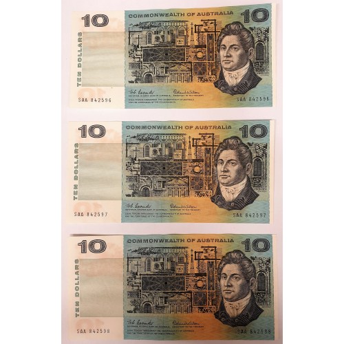 AUSTRALIA 1966 . TEN 10 DOLLAR BANKNOTE . COOMBS/WILSON . CONSECUTIVE FIVE . FIRST PREFIX SAA