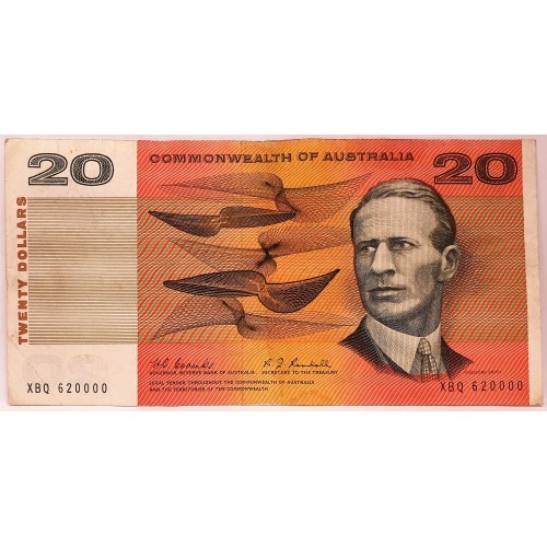 Australia 1967. Twenty 20 Dollar Banknote .Coombs/Randall. Serial: XBQ620000.